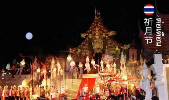 泰國人把中秋節(jié)喚做“祈月節(jié)”。每到這一天,各家各戶、男女老少都要參拜月亮。人們端坐祈禱,互相祝福。中秋桌上供奉著中國民間傳說的“八洞神仙”,桌上還擺滿了“壽桃”、“月餅”等美食(當(dāng)?shù)剡€有榴蓮味的月餅)。另外,泰國人在中秋節(jié)必吃柚子,一方面是因?yàn)檎檬氰肿由鲜械募竟?jié),一方面是因?yàn)殍肿佑执笥謭A,象征“團(tuán)圓”。