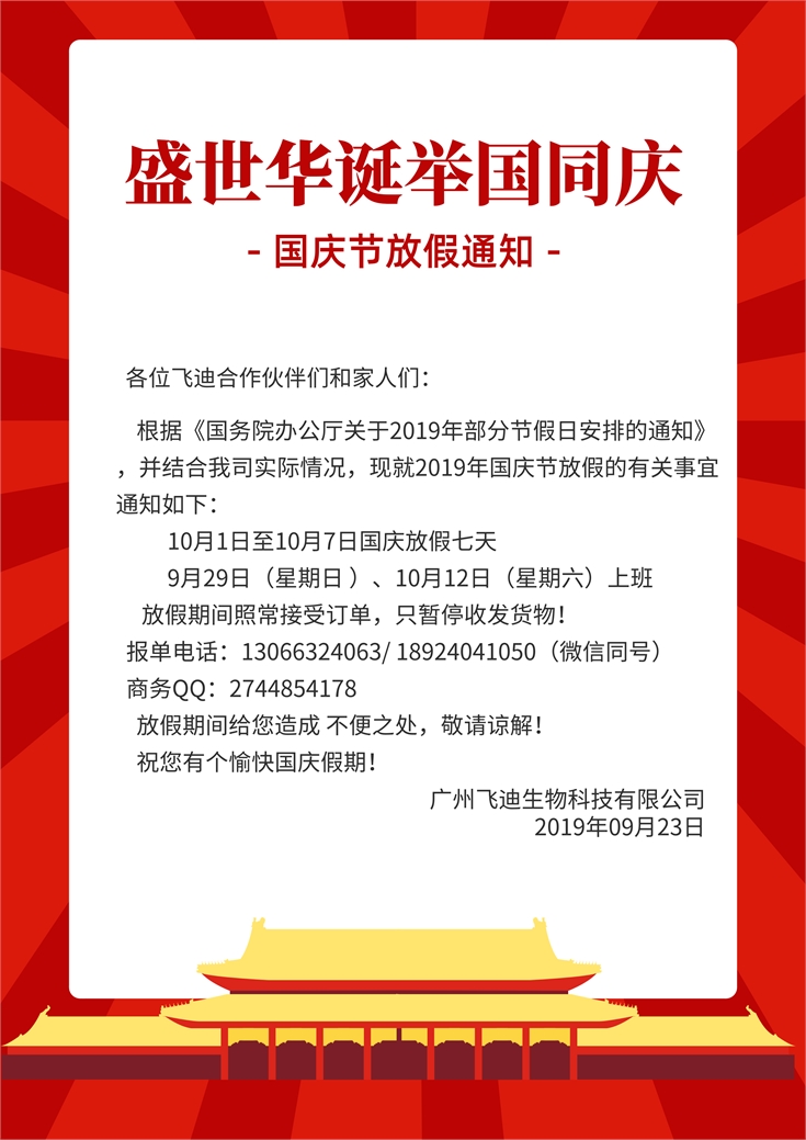 青春和祖國一起閃光,光榮與夢想共同創造。2019年是新中國成立70周年,廣州飛迪生物全體小伙伴在此祝:祖國生日快樂!