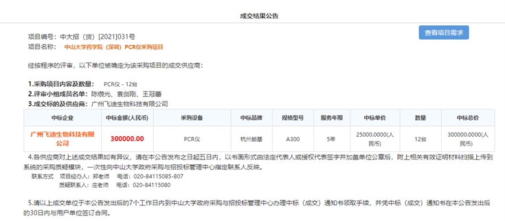 恭喜我司代理產(chǎn)品朗基A300在中山大學(xué)藥學(xué)院(深圳)PCR儀采購項(xiàng)目里中標(biāo)。