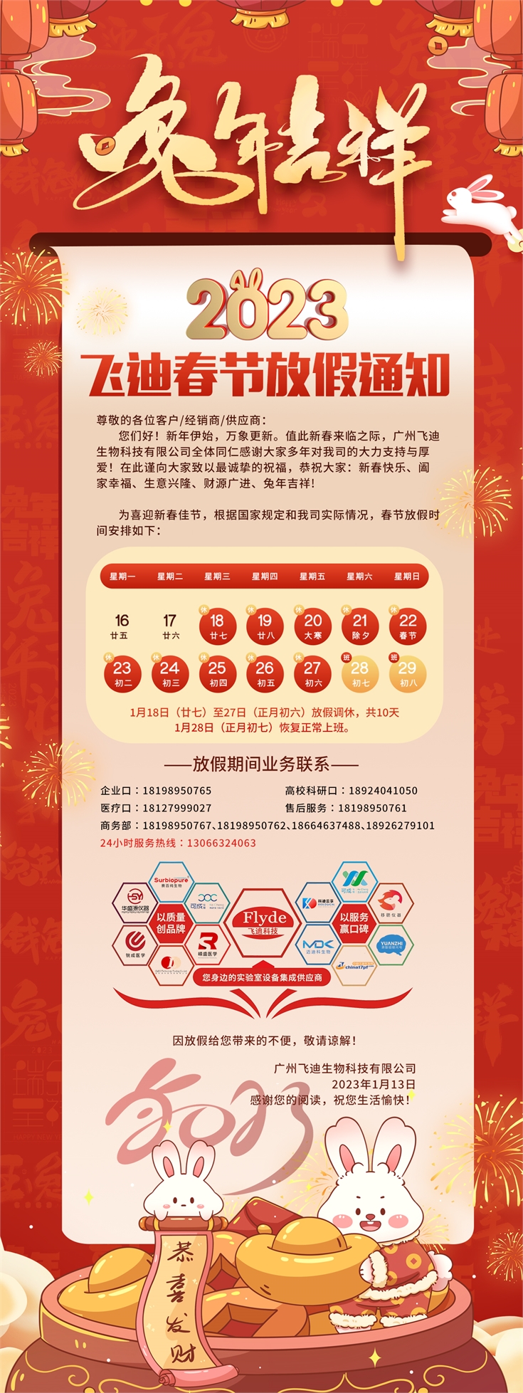 春節(jié)放假通知|飛迪祝您“錢兔“無量,“兔“然暴富,“兔”飛猛進(jìn),兔年頂呱呱