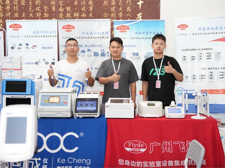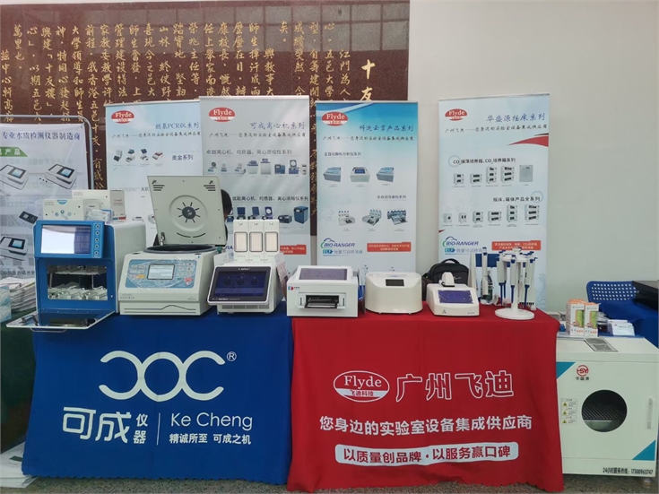 攜帶了可成離心機,賽百純核酸提取儀、試劑,朗基三槽PCR儀T30,科迪云享酶標儀KD-810A,華盛源小型搖床,源智細胞細胞復蘇儀,迪樂嘉超微量分光光度計,朗格曼單道八道十二道移液器等主要產品亮相展示。