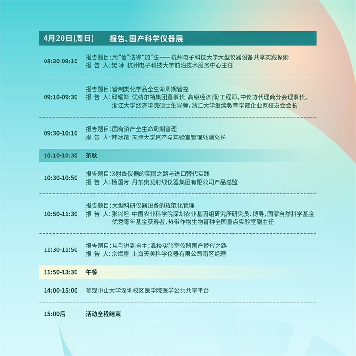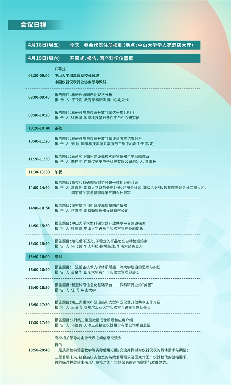 為深入貫徹習(xí)近平總書(shū)記提出的“要打好科技儀器設(shè)備、操作系統(tǒng)和基礎(chǔ)軟件國(guó)產(chǎn)化攻堅(jiān)戰(zhàn),鼓勵(lì)科研機(jī)構(gòu)、高校同企業(yè)開(kāi)展聯(lián)合攻關(guān),提升國(guó)產(chǎn)化替代水平和應(yīng)用規(guī)模,爭(zhēng)取早日實(shí)現(xiàn)用我國(guó)自主的研究平臺(tái)、儀器設(shè)備來(lái)解決重大基礎(chǔ)研究問(wèn)題?!钡闹甘疽?,落實(shí)《國(guó)務(wù)院關(guān)于進(jìn)一步深化預(yù)算管理制度改革的意見(jiàn)》(國(guó)發(fā)(2021)5號(hào))、《國(guó)務(wù)院關(guān)于印發(fā)<推動(dòng)大規(guī)模設(shè)備更新和消費(fèi)品以舊換新行動(dòng)方案>的通知》(國(guó)發(fā)(2024)7號(hào))精神,加強(qiáng)儀器資源全生命周期管理,促進(jìn)國(guó)產(chǎn)儀器在高等學(xué)校和科研院所的推廣應(yīng)用,在國(guó)家科技資源共享服務(wù)工程技術(shù)研究中心指導(dǎo)下,中國(guó)儀器儀表行業(yè)協(xié)會(huì)與中山大學(xué)、北京中教中培教育科技中心等單位研究決定,于2025年4月18日-21日在深圳市舉辦“2025年大型科研儀器資產(chǎn)管理研討?hù)邍?guó)產(chǎn)儀器進(jìn)高校(中山大學(xué)站)活動(dòng)”(以下簡(jiǎn)稱(chēng)活動(dòng))。