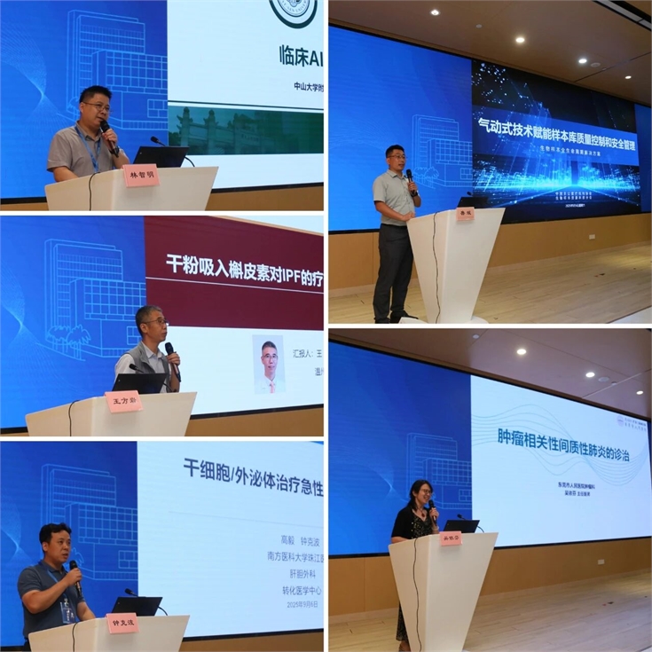 在會議的下半場,中山大學附屬第三醫院林智明教授提出風濕病的AI研究新思路、溫州醫科大學王方巖教授探討干粉吸入槲皮素對IPF的療效機制及臨床應用前景、南方醫科大學珠江醫院鐘克波教授分享MSC外泌體IIT研究的路徑及適應癥選擇、企業代表魯斌從工程角度介紹生物樣本的標準化儲存與智能化管理,東莞市人民醫院吳依芬教授分享腫瘤治療相關間質性肺炎的診治,凸顯出技術創新在肺纖維化領域中的重要作用。