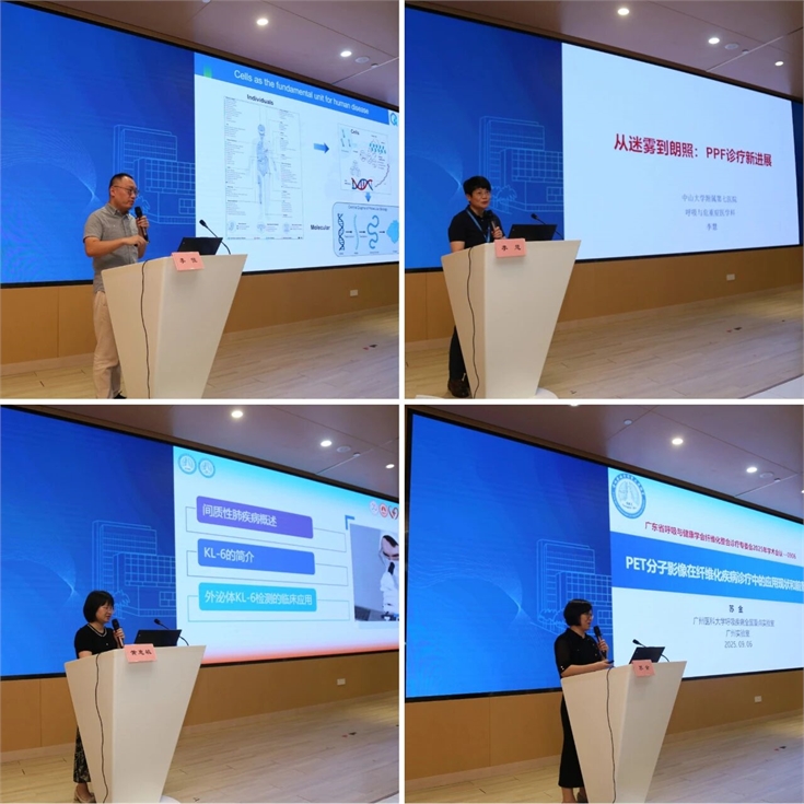 廣州醫科大學/廣州實驗室李佳教授分享了AI輔助呼吸慢病DNA甲基化標記識別與檢測研究;中山大學附屬第七醫院李慧教授系統梳理了進行性肺纖維化(PPF)診治的最新進展;廣州醫科大學附屬第一醫院黃惠敏博士介紹了外泌體KL-6作為生物標志物在CTD-ILD早期監測中的應用價值;廣州醫科大學/廣州實驗室蘇金教授則深入探討了PET分子影像在纖維化疾病診療中的應用現狀和前景。