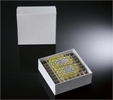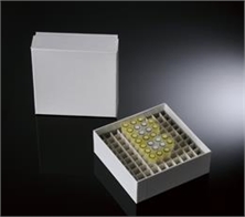 巴羅克 81格3英寸包膜紙冷凍盒 90-2381 包膜紙質冷凍盒,便于防潮,溫度適用范圍:-196°C到121°C,適用于垂直排列或者柜式冷凍架上,高度為3英寸,格數為81格,適合放置5毫升的管子。盒子尺寸:5.25"x5.25"x3" (LxWxH),白色,5個/包,20包/箱,100個/箱。