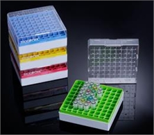 巴羅克 100格聚碳酸酯冷凍盒 90-9210 聚碳酸酯制成,耐高溫高壓,適用于液氮中儲藏樣品,溫度適用范圍:-196°C到121°C,蓋面上有網格并標注數字,共100孔,10x10分布,四種顏色:紅/黃/綠/藍,便于區分,適合存儲1.5毫升和2毫升的管,可重復使用。24個/箱。