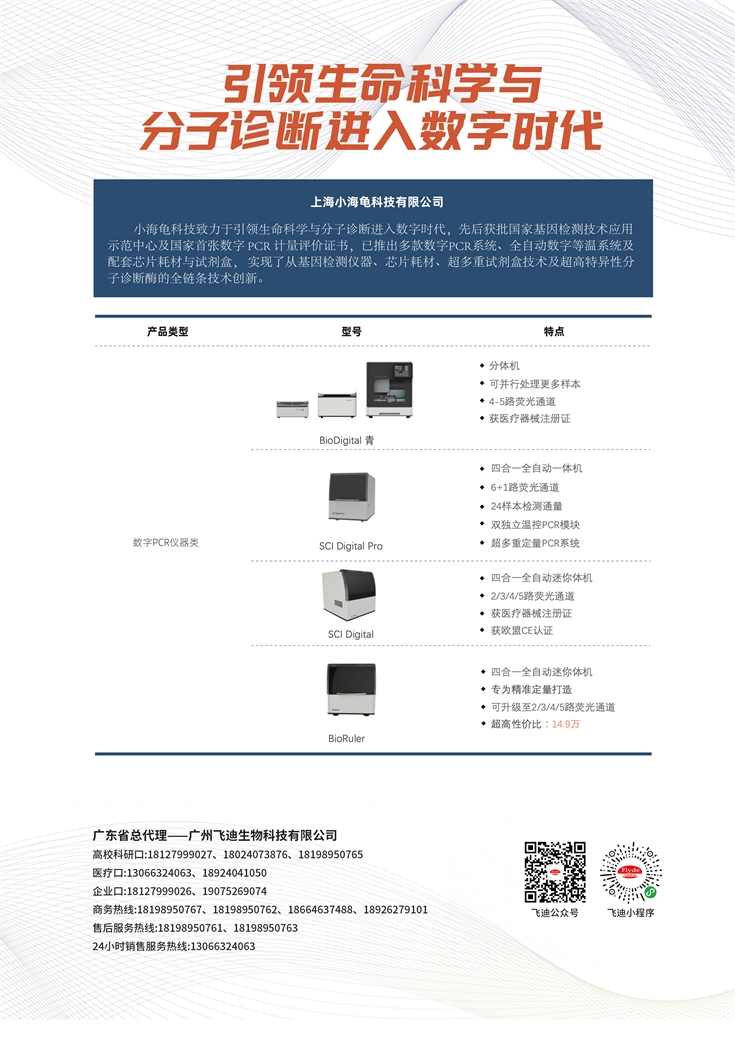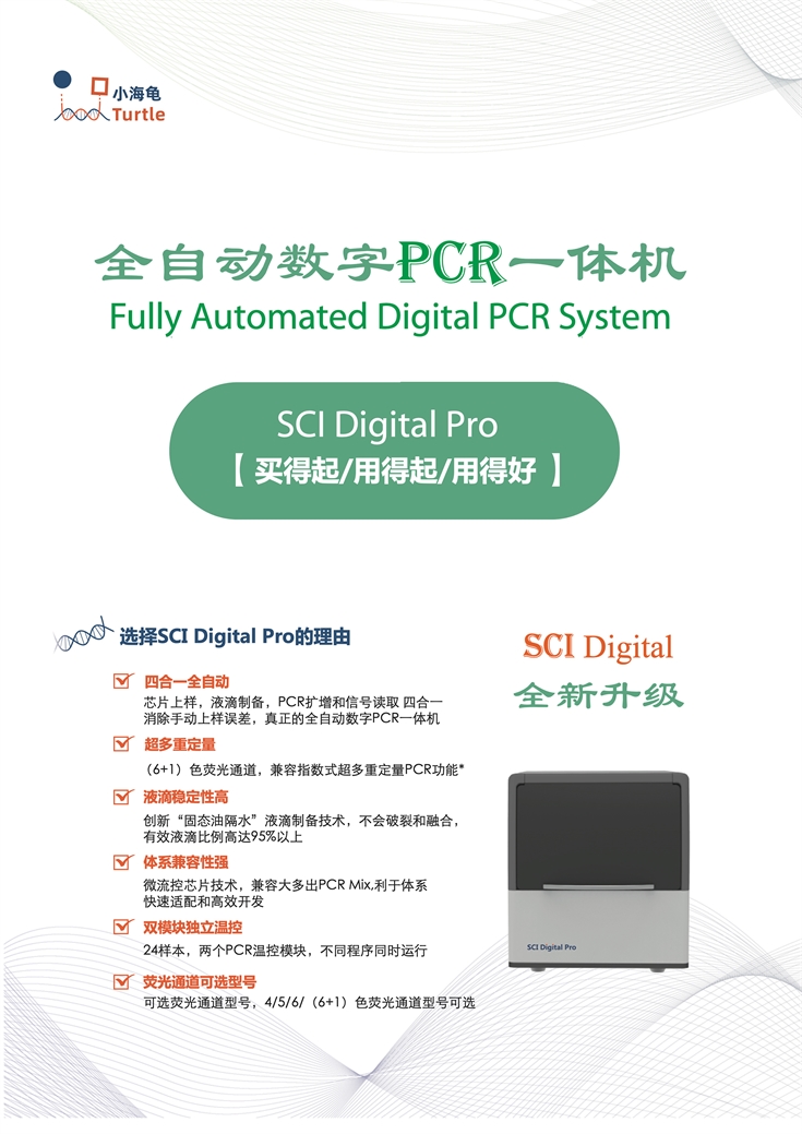 小海龜SCT Digital Pro全?動數(shù)字PCR?體機具有:四合一全?動?,超多重定量,液滴穩(wěn)定性?,體系兼容性強,雙模塊獨?溫控等特點