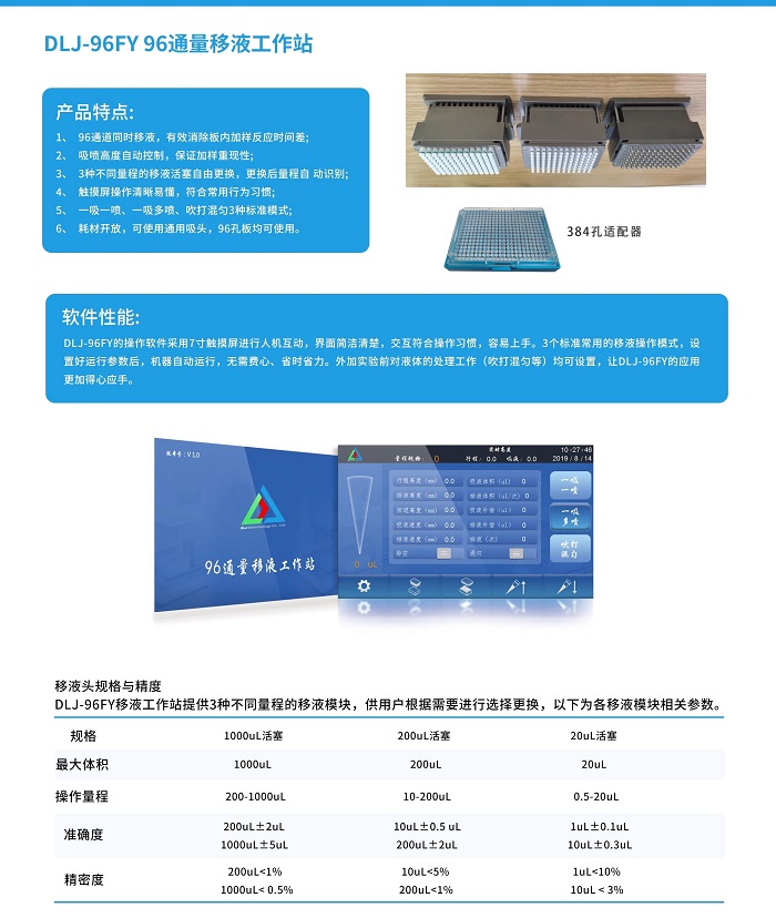 96通道同時移液,有效消除板內(nèi)加樣反應(yīng)時間差 耗材開放,可使用通用吸頭,96孔板均可使用