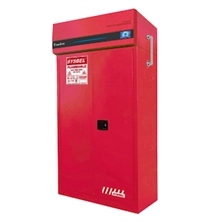 可燃化學品儲存柜(紅色標識)用于儲存閃點低于237.8℃的可燃試劑和其他可燃液體,柜體和柜門采用雙層厚達1.2mm的噴塑鋼板,兩層鋼板之間留有38mm的空氣隔熱層,具有防火、防爆、整體穩固等突出特點。
